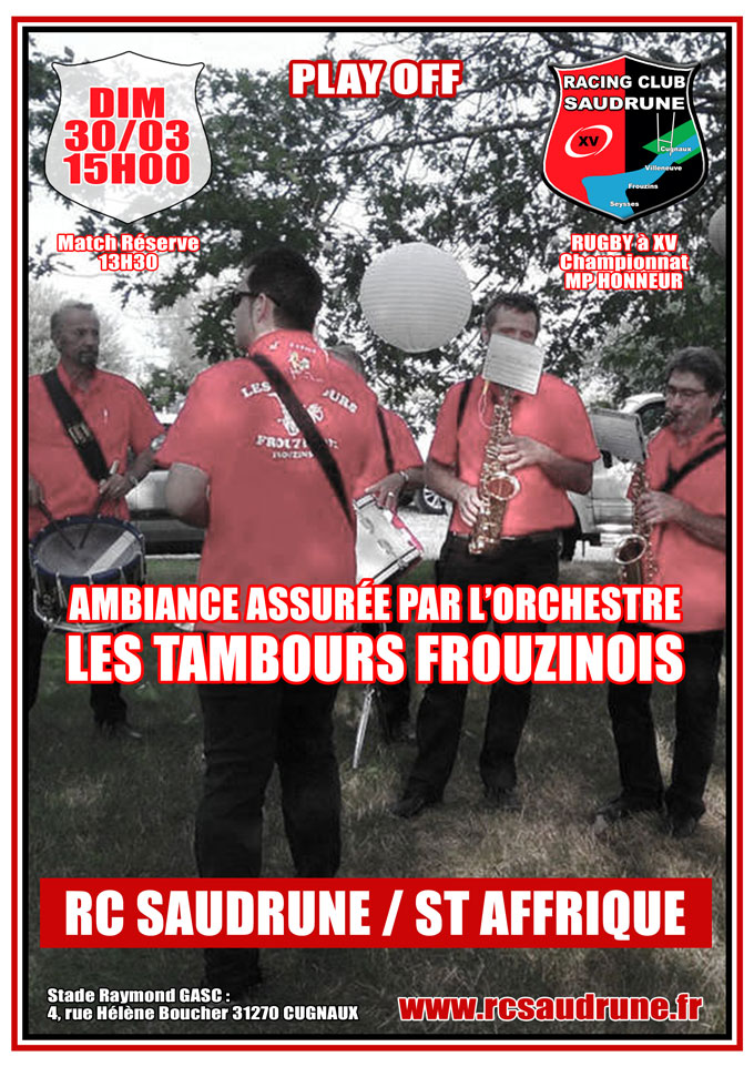 Le club souhaite réunir le maximum d’acteurs saudrunois durant ce match, des plus petits U7 aux Barricot’s, nous formons le RC Saudrune !