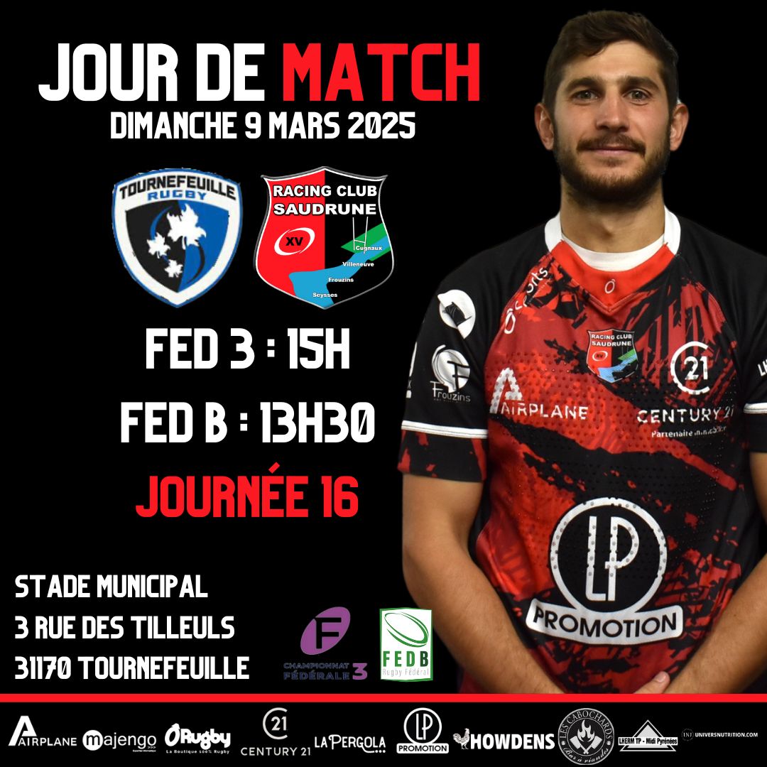 9 mars 2025 à 13 h 00 min 18 h 00 min AS Tournefeuille / RC Saudrune J16 Stade de Tournefeuille 3 Allée des Sports, Tournefeuille