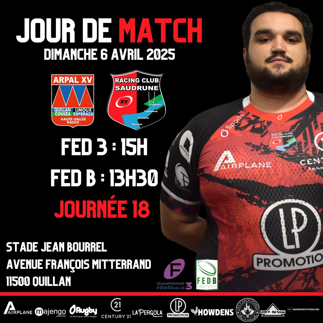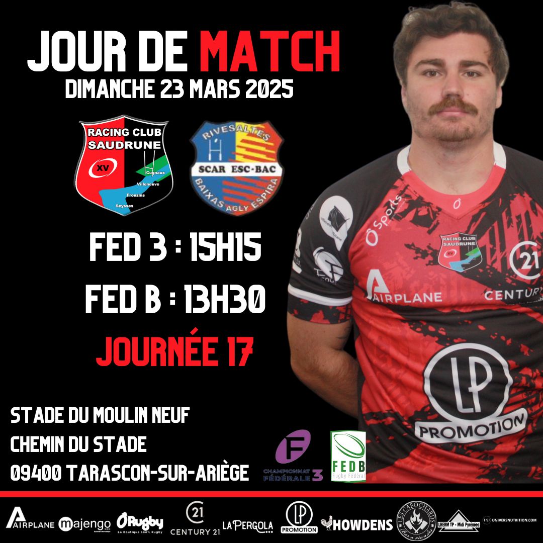 23 mars 2025 à 13 h 00 min 18 h 00 min RC Saudrune / SCAR Rivesaltes J17 Stade de Cugnaux 4, rue Hélène Boucher, CUGNAUX