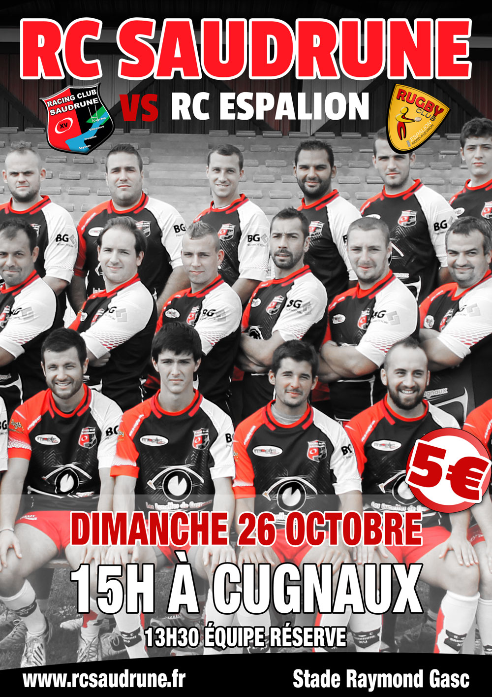 Par Nicolas Dedieu|2014-10-22T13:27:05+02:0022 octobre 2014|Affiche|Commentaires fermés sur Affiche RC Saudrune / RC Espalion