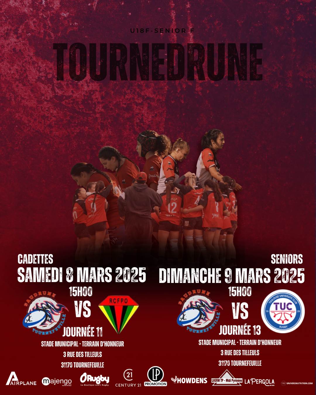 Le pôle féminin du RC Saudrune disputera deux rencontres importantes. Les cadettes affronteront le RCFPO ce samedi 8 mars à 15h et relocaliser à Cugnaux pour la 11ᵉ journée du championnat. Le lendemain, les seniors recevront le TUC Rugby pour le compte de la 13ᵉ journée. Deux matchs à domicile où les joueuses auront à cœur de briller devant leur public.