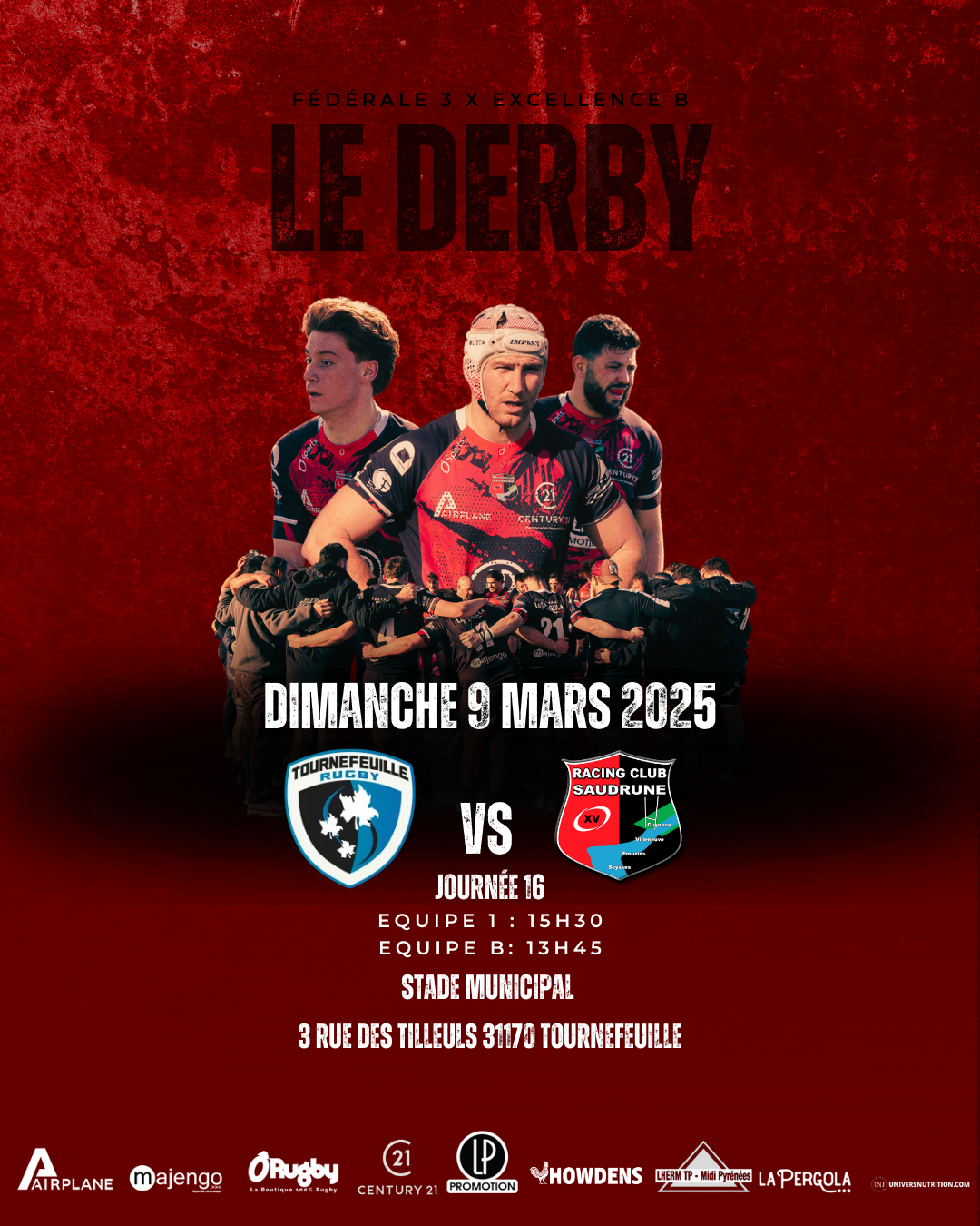 Dimanche 9 mars à partir de 13H30, nos deux équipes se déplacent chez nos voisins de Tournefeuille pour la 16ème journée de championnat.