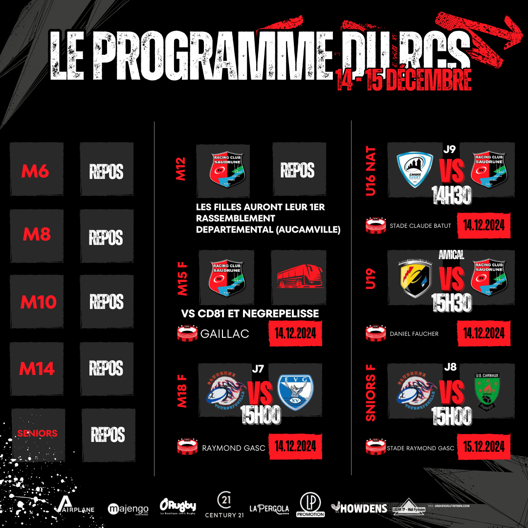 LE PROGRAMME DE NOS SECTION POUR LE WEEK END DU 14-15 DÉCEMBRE 2024