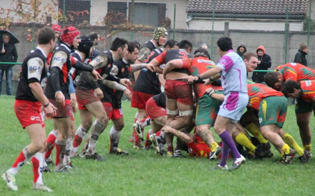 Ce dimanche le RC Saudrune est venu affronter sur son terrain champêtre les ariègeois de Laroque Belesta. Avec le vent, la pluie et le terrain gras, la puissance des avants locaux leur permis de mener au bout de dix minutes 14 à 0 grâce à deux essais exactement identiques dans leur construction: touche à 5 mètres et groupé pénétrant. Les banlieusards commencèrent à jouer, en mettant la pression sur les 3/4 locaux, jusqu’à marquer un essai sur une pénalité parfaitement jouée à la main. Au milieu de la seconde mi-temps et malgré un jeu au pied défaillant La Saudrune revenait à 4 points de leur hôte (17 à 13), et pouvait envisager une autre fin à cette opposition. Dans les dix dernières minutes les joueurs de l’entente ariègeoise remettaient la pression sur les rouges et noirs et inscrivaient 2 nouveaux essais pour clôturer la rencontre sur le score de 31 à 13. La Saudrune se déplacera chez le leader de la poule Saint Girons dimanche prochain. La réserve s’incline 18 à 12.