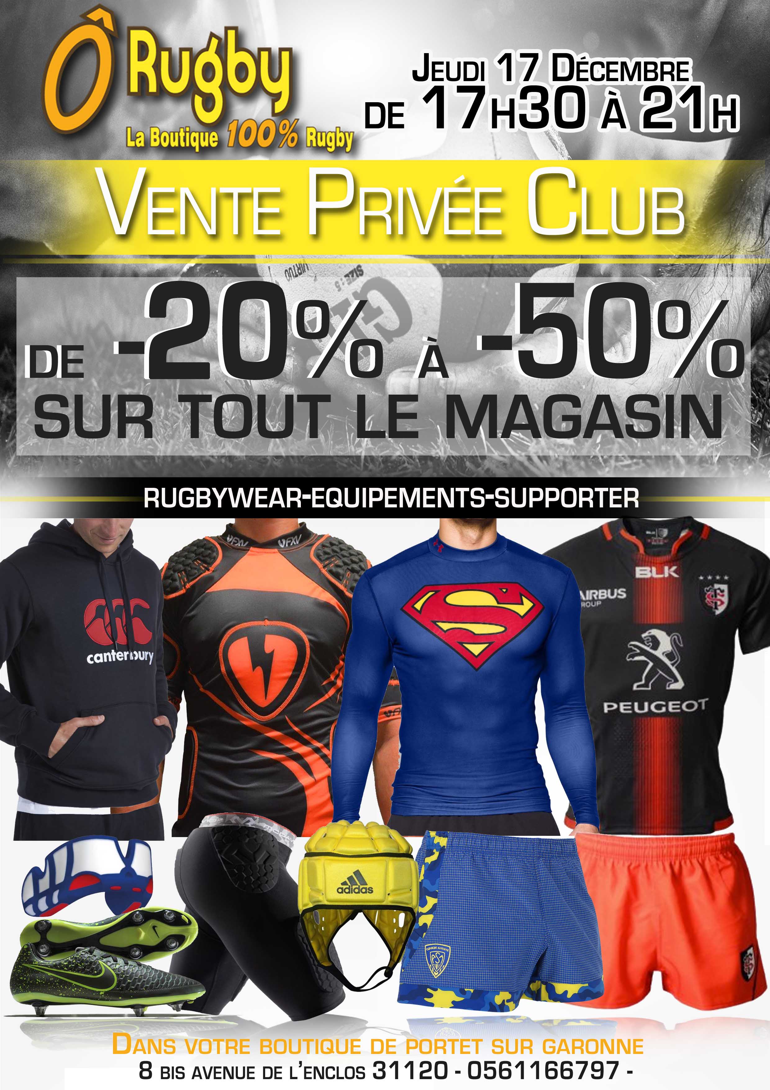 Ne ratez pas la vente privée exceptionnelle d’Ô-Rugby, de -20% à -50% de remises magasin pour les licenciés afin de récompenser la fidélité du club.